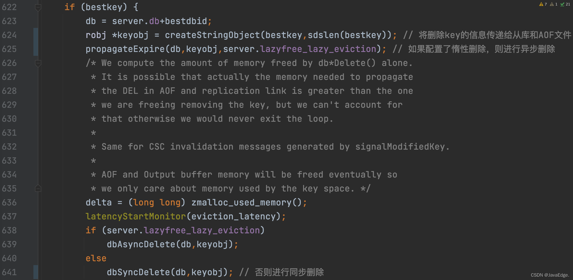 一旦选到被淘汰的K,performEvictions就会根据Redis server的惰性洗掉配置,执行同步洗掉或异步洗掉: