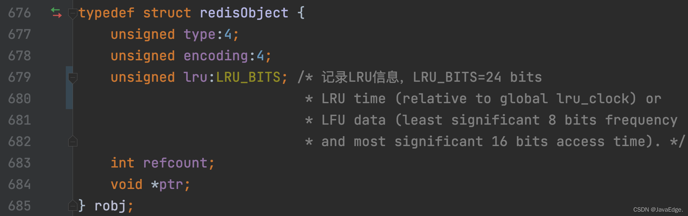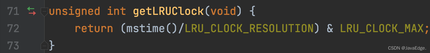 而当maxmemory_policy没有配置为LFU策略时,lookupKey函式就会呼叫LRU_CLOCK函式,来获取当前的全域LRU时钟值,并将其赋值给键值对的redisObject结构体中的lru变量