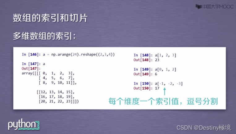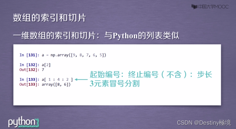 此处直接参考嵩天老师的PPT,阵列索引切片这个部分还是比较easy的,