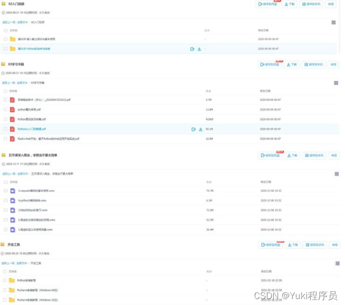 资料我按照Python入门视频、基础学习书籍、爬虫以及Python、pycharm安装教程分别整理出来,本资料会永久保存,并且会持续更新,