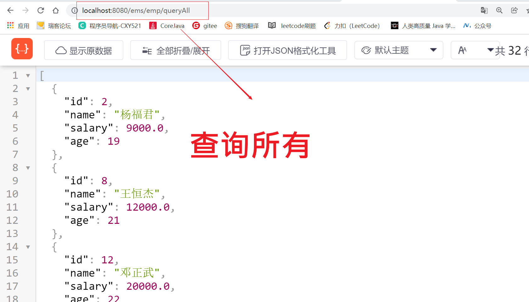 http://localhost:8080/ems/emp/queryAll