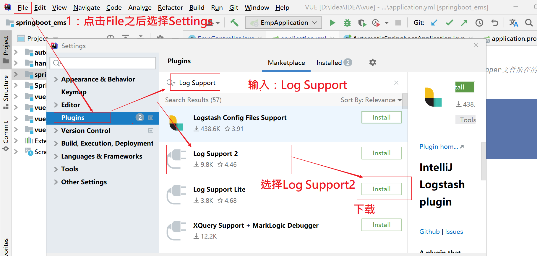 1、下载Log Support2插件