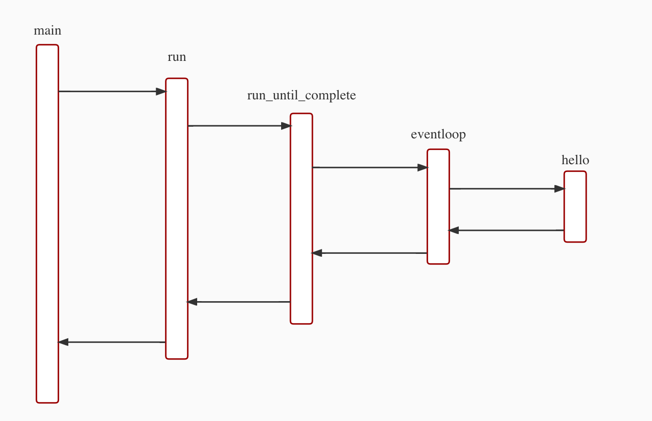 ret = run(hello())直接呼叫run,自变量是用户函式hello(),我们看下run的原始码